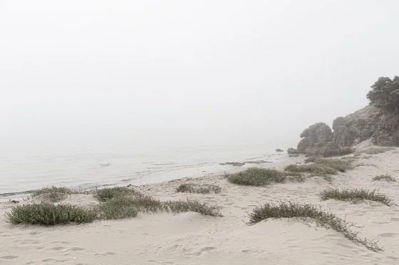 Winter in Woodend is cold, -3 degrees on this day. I wake early and set off not too far away as we can only travel five kilometres from home. Along a dirt road I have travelled before, through these encompassing white clouds the landscape looks remarkably different. My imagination eludes me and I am misguided into believing this is the Wilderness. The heavy fog reduces the surrounding landscape, suffused by the early morning light, thinking I am remote and distant from any human connection.